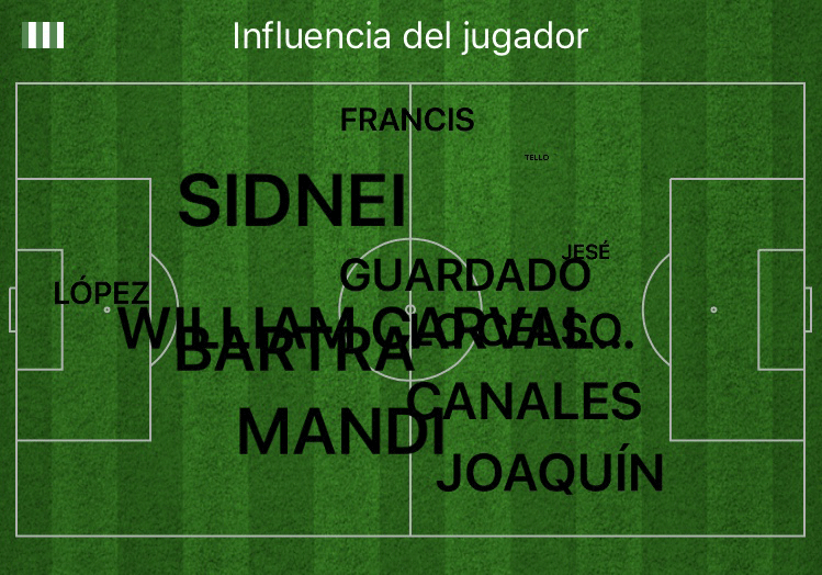 Con la entrada de Tello, comenzó también a atacar por la izquierda, dividiendo la atención de los zagueros del Celta y poniendo así al catalán en ventaja para que hiciera varios uno contra uno ante Hugo Mallo: