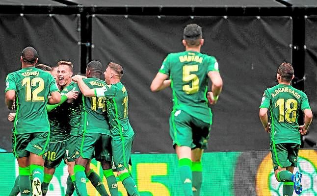 El Betis celebró en Vigo su último triunfo lejos del Villamarín, donde sólo le restan cuatro partidos de Liga.F.M.