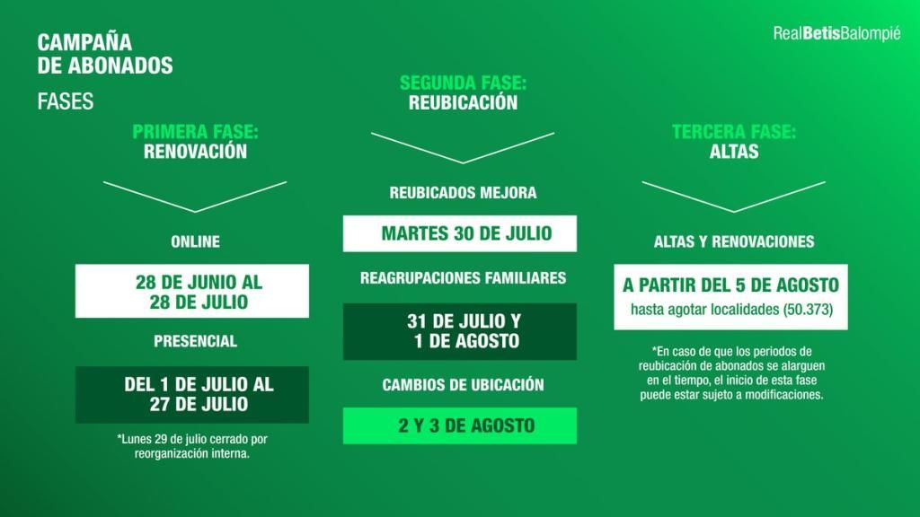 En cuanto a las fechas de la campaña de abonados, desde este mismo viernes ya a través de la página web, de forma online, y hasta el próximo 29 de julio. A partir del 1 de julio las taquillas abrirán para las renovaciones.