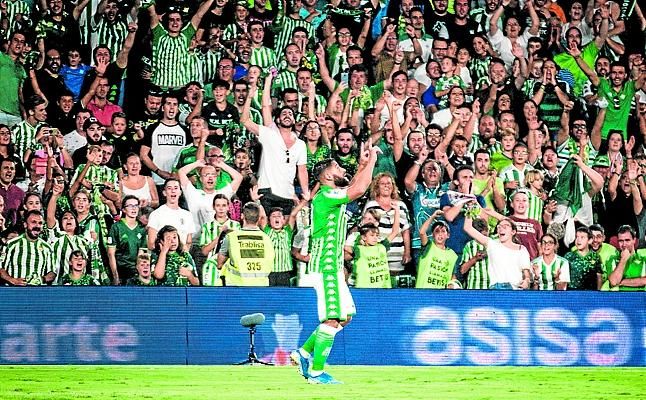 Su gesto tras ver portería, apretando los puños hacia la grada y sonriendo, demuestra que el futbolista franco-argelino está más que integrado en el fútbol español y en el Betis.