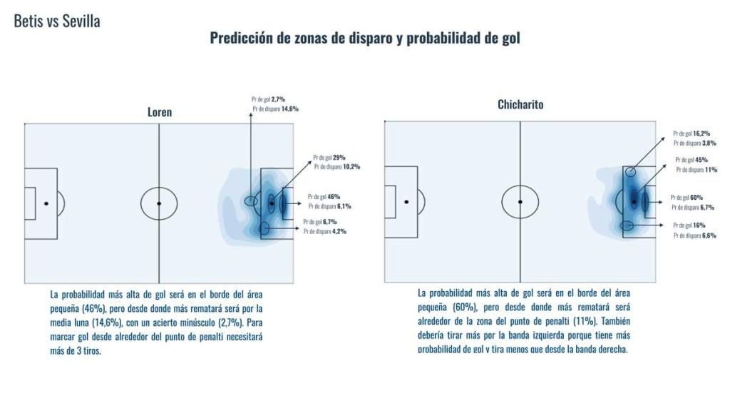 Así, por último, precide Olocip, a través de su pionera aplicación de la Inteligencia Artificial y para ESTADIO Deportivo, lo que deberán hacer Loren y Chicharito para estar más cerca del gol en el duelo cainita de este domingo