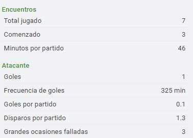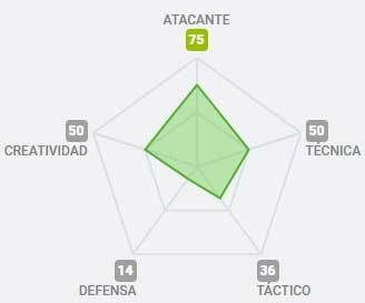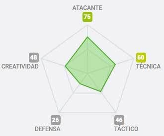El atacante marbellí, según refleja el gráfico de SofaScore, destaca en apartado ofensivo, el técnico y el creativo, pues suele participar en el juego del equipo y no necesita apenas remates para perforar la portería rival.