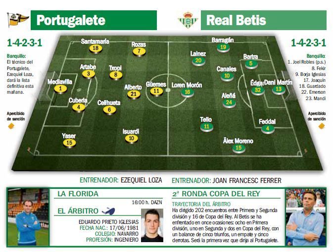 Por raro que parezca, por aquello de que es sábado y el fin de semana parece estar reservado para la competición doméstica, el Betis visita esta tarde (16:00 horas, DAZN) el estadio de La Florida para medirse al Portugalete de Tercera división en la segunda ronda de la Copa del Rey, que en su nueva y remozada edición no sólo ha eliminado los enfrentamientos a doble partido sino que ha innovado con las fechas, aprovechando, en esta ocasión, la disputa de la Supercopa española, el otro 'invento' de Luis Rubiales.
