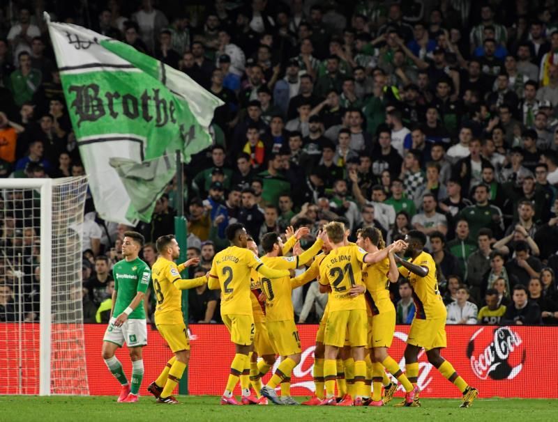 Tras un primer periodo en el que el Betis no aprovechó haberse adelantado dos veces, por medio de Canales de penalti y de Fekir, al empatar primero el holandés Frenkie de Jong y justo antes del descanso Sergio Busquets, el Barcelona se impuso en la segunda, creó bastantes ocasiones y de nuevo a balón parado, como en el 2-2, recogió su premio con un gol de cabeza de Lenglet a 18 del final.
