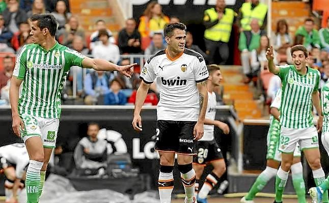 Quizás no "más solvente fuera de casa", como destacó en la previa Rubi, porque la solvencia tiene que ver con esa competitividad de la que adolece que con el orden, pero sí es cierto que el cuadro verdiblanco estaba siendo hasta el ecuador más equipo, merced a un buen funcionamiento de su bloque defensivo. Con las líneas adelantadas y en pocos metros, no dejó correr a un Valencia que trató de salir de inicio 'a lo Marcelino'. Esto es, recogido en su campo e intentando transitar veloz a la contra.