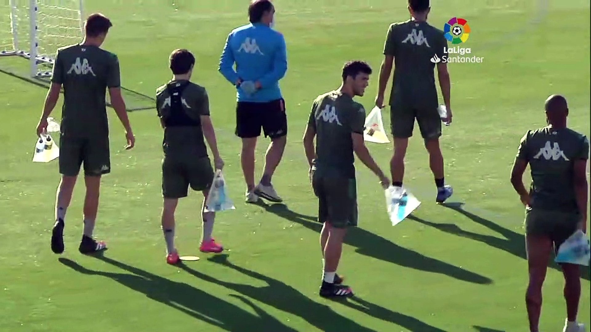 El Betis ya entrena por grupos y sin contacto, según marca la fase tres del protocolo de LaLiga para la plena vuelta a la actividad de los equipos para los once partidos que restan por jugar de la competición liguera.