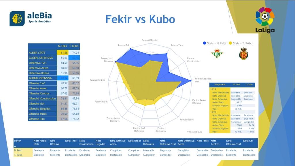 Alebia Analytics ha comparado a Kubo con Fekir y, curiosamente, tienen un perfil de métricas muy similares, aun siendo el franco-argelino, ocho años mayor, un futbolista de más nivel, actualmente.