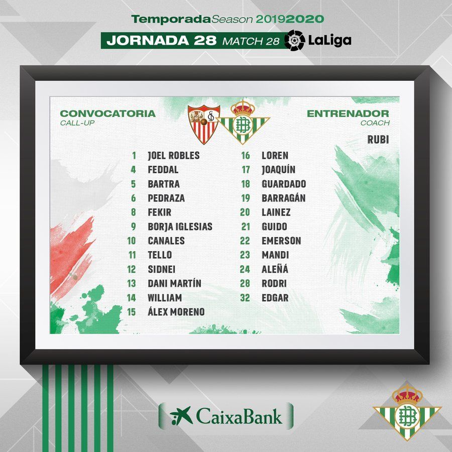 Pocas dudas había sobre el equipo que se iba a llevar Rubi para el derbi sevillano. De hecho, el técnico del Real Betis ya lo dijo en la rueda de prensa. Sólo había que sumar y saldrían los 23 elegidos.