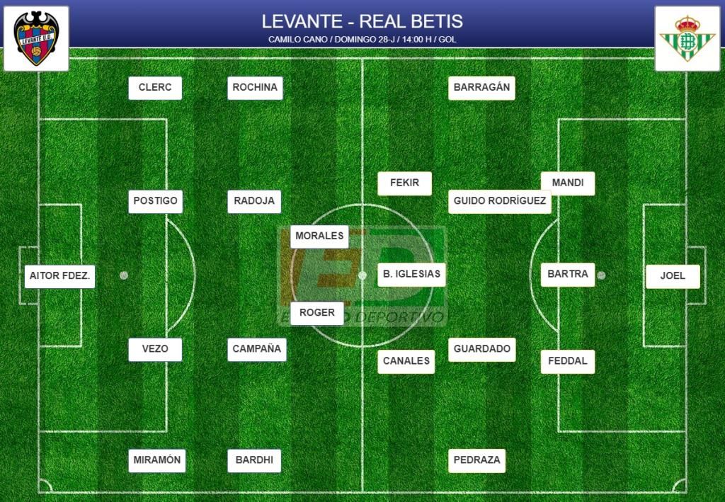 Por todo lo anterior, no es esperan demasiadas variaciones en el once de Alexis en el novedoso escenario que visitan este domingo los verdiblancos. El coqueto Camilo Cano de La Nucía, que alberga los partidos caseros del Levante tras el parón por la remodelación del Ciudad de Valencia, acogerá un duelo entre un anfitrión casi en chanclas (merced al gran trabajo de Paco López y los suyos, con la permanencia en el bolsillo) y un visitante con lo mismo en juego (lejos del descenso y a una distancia prohibitiva de Europa), pero con urgencias por demostrar y por demostrarse. Dado que los granotas juegan con dos puntas, como el Espanyol, no se intuye una variación de sistema.