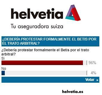 Ha sido unánime, pues el 96% de los participantes en la encuesta ven como una obligación que el Betis presente una queja oficial por los arbitrajes sufridos en este curso y los evidentes perjuicios.