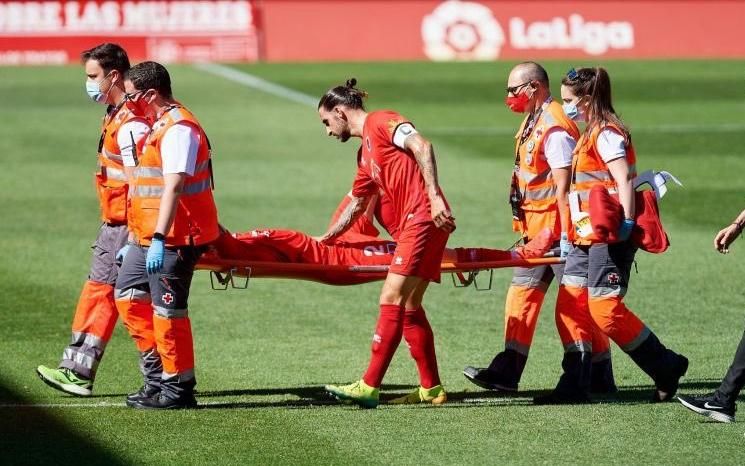 Alex Sola sufrió una torsión de la rodilla derecha durante el partido Numancia-Extremadura, al final de la primera parte, y tuvo que ser retirado en camilla del terreno de juego, con claras muestras de dolor.