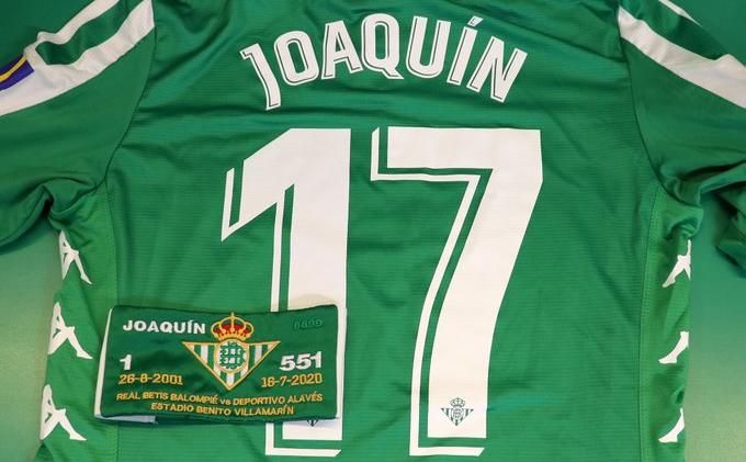 Joaquín saldrá en el once inicial facilitado por Alexis Trujillo para el Betis-Alavés de esta noche, partido correspondiente a la jornada 37 con el que el conjunto verdiblanco despedirá está decepcionante temporada en el Benito Villamarín, y lucirá un brazalete especial conmemorando su célebre efeméride.