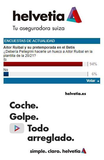Nada más y nada menos que un 94% de los votantes apostaron por la continuidad de Aitor Ruibal en el Betis de Pellegrini, viéndolo como un futbolista más que aprovechable durante la temporada. Por el contrario, solo un 6% no lo ve con el nivel necesario para competir por un puesto en Heliópolis.