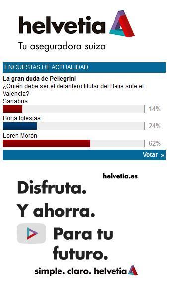 Así se refleja en la ‘Encuesta Helvetia’ lanzada por ESTADIO Deportivo, en la que hasta un 62% de los participantes se decantan por el canterano al hora de ‘aconsejar’ a Pellegrini con respecto a la duda en la delantera. Por contra, sólo el 24% prefiere a Borja iglesias, el fichaje más caro del pasado verano, bajando el número de adeptos de Sanabria hasta el 14%. La decisión, no obstante, está en manos del ‘Ingeniero’.