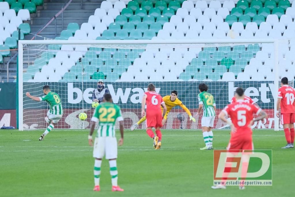 El Gran Derbi estaba ya 1-1, el balón le cayó en los pies y encaró con firmeza a Marcos Acuña, quien fue reculando hasta meterse dentro de su área y sacando una pierna con la que terminó por derribarle. El mediapunta bético, pese a que Sergio Canales había transformado la primera de las penas máximas del encuentro (la polémica), se empeñó en lanzarlo él mismo. Para algo se lo había sacado de la chistera, pensaría. Pero no pudo festejarlo.