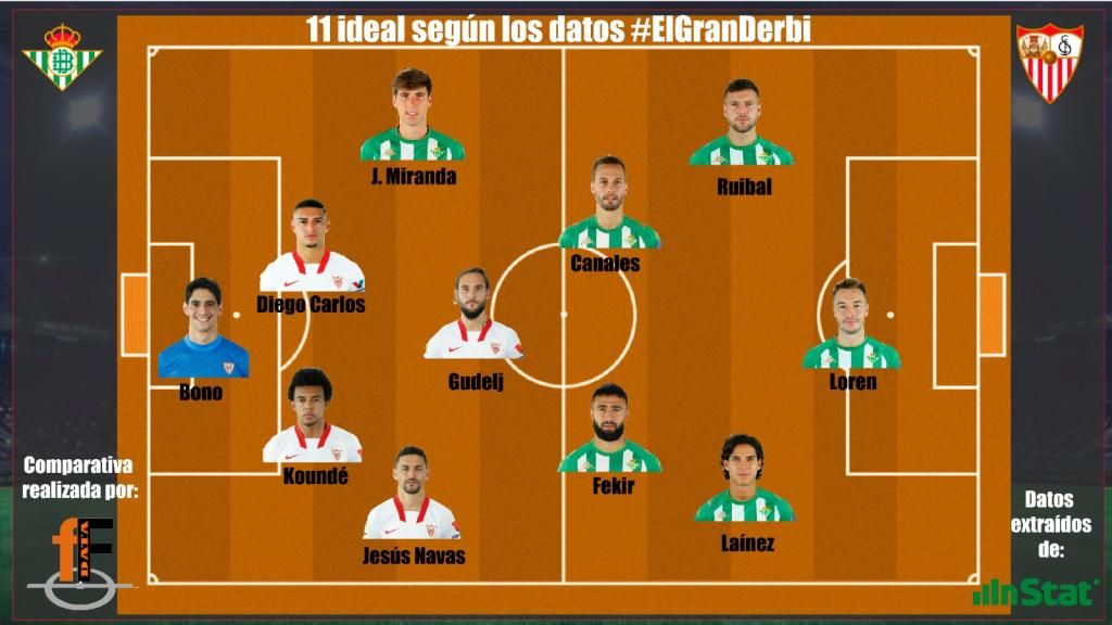 Sin duda, el Betis generó más arriba, como muestra que disparase 10 veces más (16) que los nervinenses (6), y en ésas ocasiones aparecieron generalmente Canales, Ruibal, Lainez, Fekir y un Loren que se movió bien entre dos centrales de tremendo nivel como Koundé y Diego Carlos, quienes aparecen en el equipo ideal junto a los también sevillistas Bono y Jesús Navas. El palaciego, pese a no terminar de dejar atrás sus problemas físicos y estar claramente mermado.