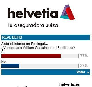 El beticismo, según la encuesta realizada por ESTADIO, da su 'consentimiento' a un traspaso por 15 millones de euros en el caso, lógicamente, de que el interés del Benfica o de otro club cristalizara en una oferta formal. No en vano, el 77% de los participantes en el sondeo considera suficiente esa cantidad por un futbolista que generó muchas expectativas y que, pese a su indiscutible calidad, no ha respondido plenamente a ellas por una razón u otra.