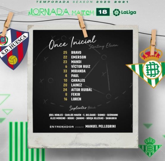 Ya está el once de Pellegrini, con Paul, Canales, Lainez, Aitor Ruibal y Loren.