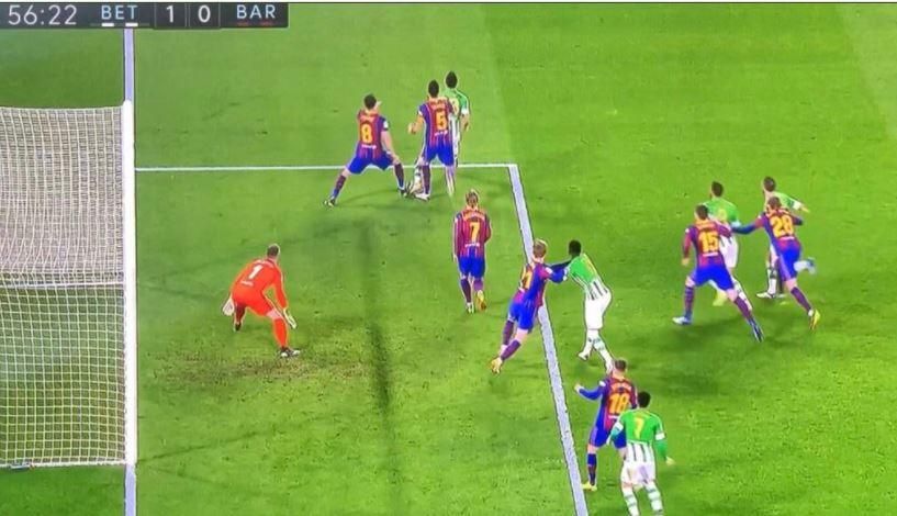 La polémica está servida y las redes sociales arden desde anoche con muchos béticos indignados con un penalti con el que el Betis podría haber marcado su segundo gol, más aún cuando tres minutos más tarde Leo Messi conseguía el tanto del empate con el que el Barça iniciaba la remontada.