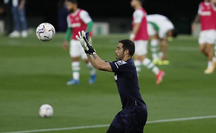 Por último, Claudio Bravo ha hablado sobre el estado de su compañero Borja Iglesias, que cayó lesionado ante el Elche y no pudo estar frente el Atlético: "Lo hablamos el día del partido, se hace una tremenda herida, una contusión grande en la zona de la cadera. Y tiene la fuerza para tirar el penalti. Ese tipo de cosas te habla de las ganas de cada uno de hacerlo bien".