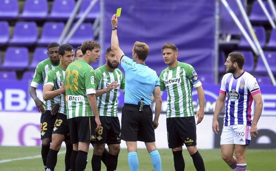 El marcador del José Zorrilla marcaba ya el minuto 90 cuando el Betis disponía de una falta para buscar el tanto de la victoria a unos metros del borde del área. Lo que no debería haber sido más que un balón colgado al área desembocó en una discusión entre los jugadores béticos y el colegiado Pizarro Gómez que acabó con hasta tres béticos amonestados: Mandi, Fekir y Emerson.