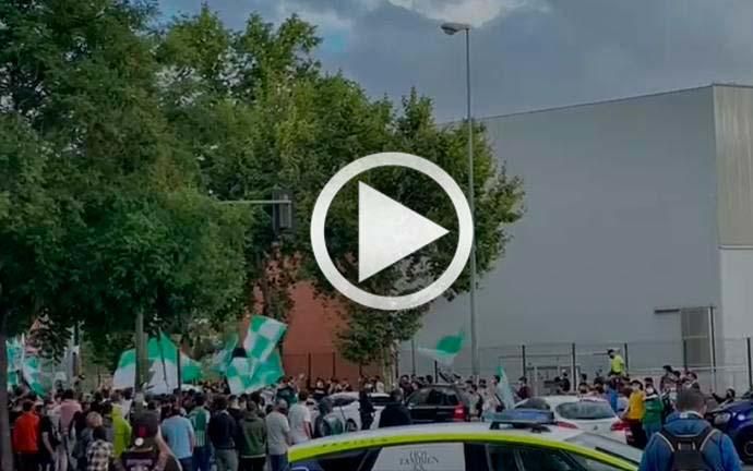 La afición bética, en un acto promovido por Gol Sur 1907, se ha concentrado en el entorno del Benito Villamarín para animar al Real Betis antes del trascendental partido que esta noche disputa ante el Granada. Cientos de aficionados, con banderas, no han dudado en demostrar a los suyos que están ahí aunque no puedan sentirlos cada semana dentro del campo.