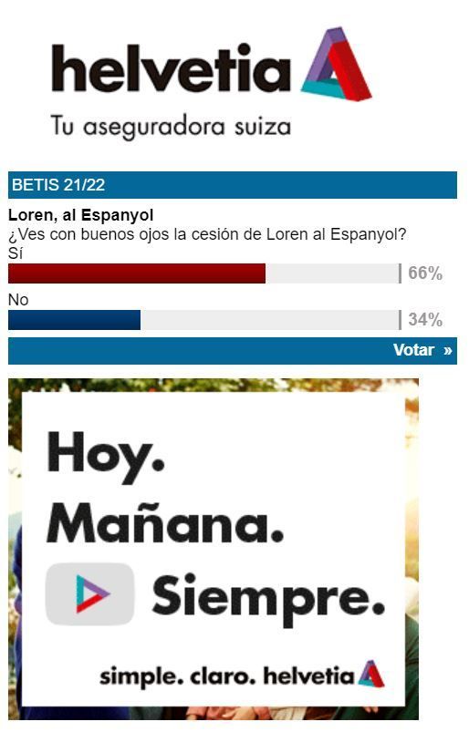 Pero, ¿qué opina la afición bética? ¿Está de acuerdo con la salida de Loren? Eso precisamente es lo que hemos preguntado este fin de semana en nuestra #EncuestaHelvetiaED, si vería con buenos ojos la cesión de Loren al Espanyol, el club que parece está apostando más fuerte por hacerse con los servicios del delantero marbellí.