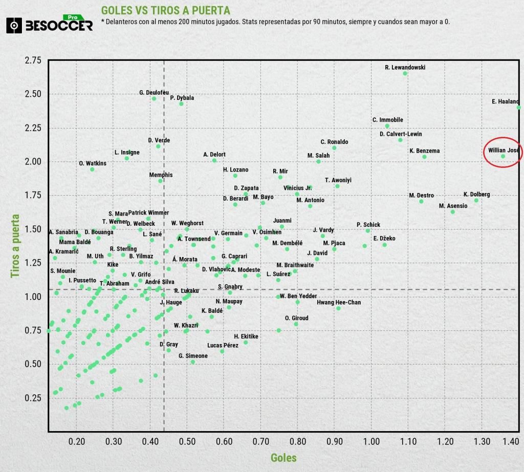 Unos números que ponen a Willian José, en este inicio de curso 2021/2022, al mismo nivel que estrellas como Salah, Benzema o Insigne y muy cerca de otros como Cristiano Ronaldo, Inmobile o Calvert-Lewin.