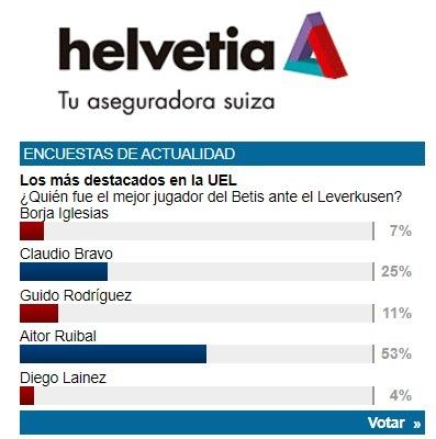Ese esfuerzo tuvo su premio y así se lo reconocen los béticos. El jugador catalán fue para ellos el mejor del partido, por encima incluso de un Claudio Bravo que salvó al Betis hasta en cuatro ocasiones. Así lo indican en la #EncuestaHelvetia, donde reconocen su gran partido.