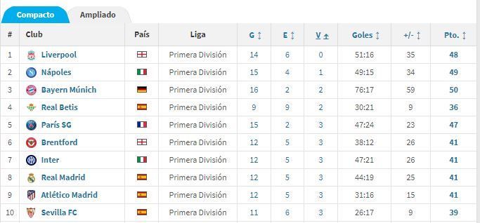 Estos no son los únicos números que refuerzan el buen marchar del Real Betis, pues si consultamos los últimos 20 partidos oficiales de todos los equipos de las cinco grandes ligas, se puede observar como ha caído las mismas veces que Bayern Munich, dos, y que sólo es superado por Nápoles, con una derrota, y Liverpool, que está invicto.