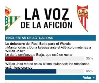 La confianza hoy día en el 'Ingeniero' y en su plan 2.0 es ciega, como reflejan los resultados de la encuesta propuesta ayer por ESTADIO Deportivo a sus lectores. Y es que dos de cada tres participantes deja en su mano la decisión sobre el mejor delantero para la visita dominical al Wanda Metropolitano. Y es que le tocaría, por turnos de rotación, a Willian José, si bien Borja Iglesias viene de hacer un doblete ante el Valencia. La verdad es que el brasileño también dio el triunfo contra el Rayo al transformar un penalti, por lo que, como se dice coloquialmente, sería como elegir entre papá y mamá. Pero sólo un 35% daría confianza al 'Panda' ante el Atlético, siendo un 65% el que entiende que, si la alternancia ha ido bien hasta ahora y los dos están en buen momento, no hay motivos para alterar el guion.