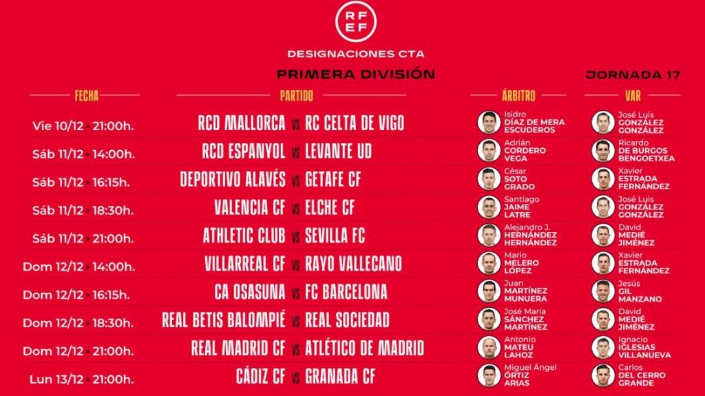 Estará acompañado en el VAR por el colegiado catalán Medié Jiménez, que tras su descenso la pasada campaña se ha retirado del arbitraje sobre el césped y sólo se dedica al VAR.