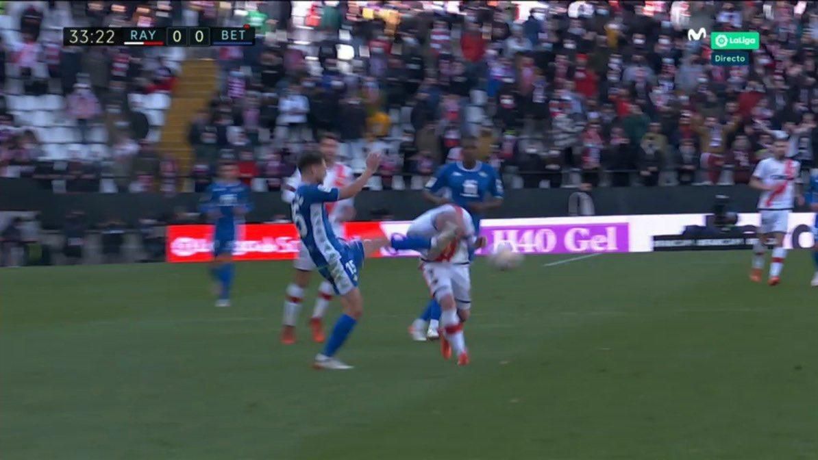 Álex Moreno no ha vivido un feliz retorno a la que fue su casa, Vallecas. El catalán ha sido expulsado en el minuto 34 de encuentro, al considerar Muñiz Ruiz que su entrada a Isi Palazón era juego peligroso o que podía dañar la integridad del extremo del Rayo Vallecano, aunque las imágenes de televisión demuestran que es el local el que baja en exceso la cabeza, por lo que el VAR debió rectificar la decisión del colegiado gallego. Después de varios minutos de análisis, todo quedó tal y como estaba, con un grave perjuicio para los intereses de un Real Betis que, con todo, se ha marchado al descanso ganando 0-1, merced a un gran contragolpe de Canales, Fekir y Bellerín finalizado por el cántabro.