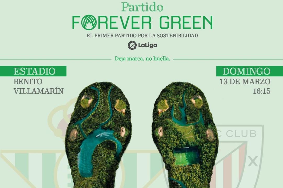 El Real Betis Balompié y el fútbol profesional vuelven a mostrar su compromiso contra la crisis climática con la realización del partido 'Forever Green', el primer encuentro por la sostenibilidad de LaLiga. El Betis-Athletic del próximo 13 de marzo se convertirá en el primer encuentro que tenga como objetivo la protección del medio ambiente, a través de diferentes acciones en torno al día del encuentro.