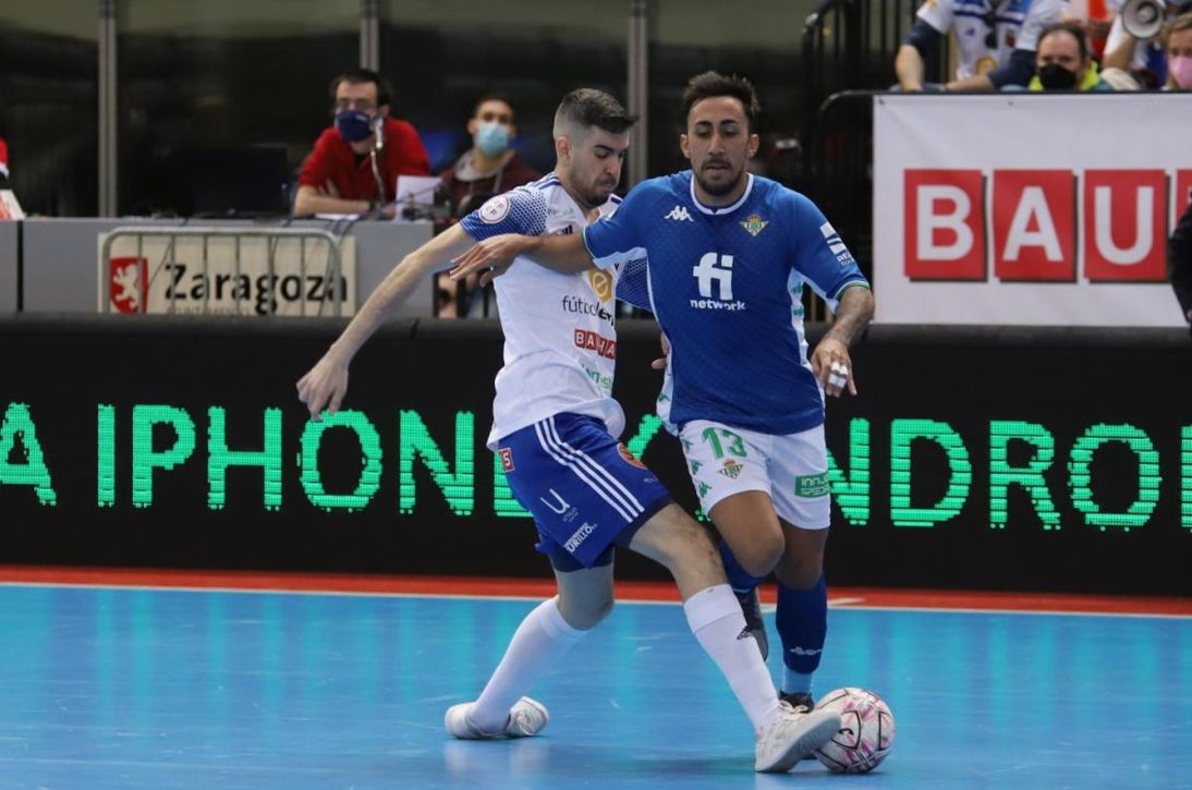 A partir de ahí el técnico bético, Juan Antonio Miguel 'Juanito', buscó acortar distancias con portero-jugador hasta el final de este periodo pero el equipo maño se defendió bien y aunque los visitantes tuvieron un par de buenas ocasiones para haber acortado distancias, también el conjunto zaragozano pudo haber aumentado la cuenta con un par de lanzamientos desde su puerta, tras robar balón, que salieron desviados.