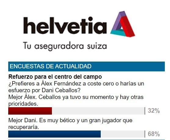 Entonces, la ausencia de fichas (nadie quería salir) y margen salarial, junto a la prioridad de contratar a su amigo Bellerín por la grave lesión de Sabaly, frustraron un desembarco que tampoco pudo ser en enero por cuestiones similares. El acuerdo verbal con Dani para que rebajase su ficha y para el Real Madrid para que aceptase un traspaso de bajo coste (no más de los 15 kilos que marca su valor de mercado) o una cesión con obligación de compra sigue sobre la mesa. La clasificación para Champions ayudaría por los ingresos extra (ya los habrá con la Supercopa), aunque, de momento, la dirección deportiva verdiblanca ha paralizado el fichaje de Álex Fernández, apalabrado a coste cero, hasta saber lo que ocurrirá con Guido Rodríguez, William Carvalho y Paul. Y también con el utrerano, 'indultado' por casi siete de cada diez participantes en la encuesta propuesta por 'www.estadiodeportivo.com': un 68% lo prefiere antes que el todavía jugador del Cádiz, que recoge un 32% de apoyo. El crédito de Dani está volviendo.