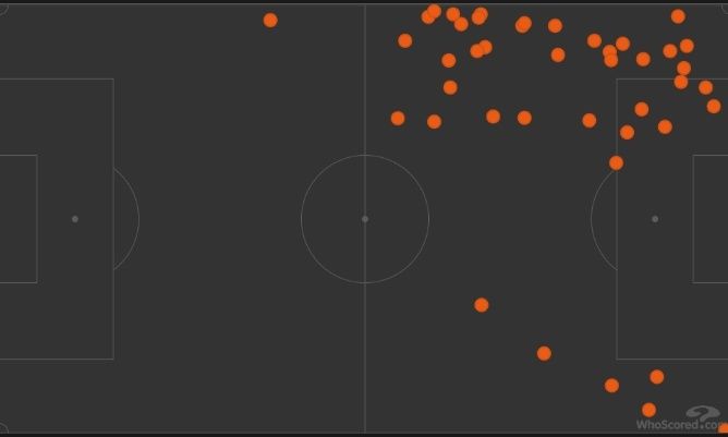 Ante el Sevilla FC, dio siete pases dentro del área. Siete. Y una treintena, prácticamente, en el último tercio del campo. De locos.