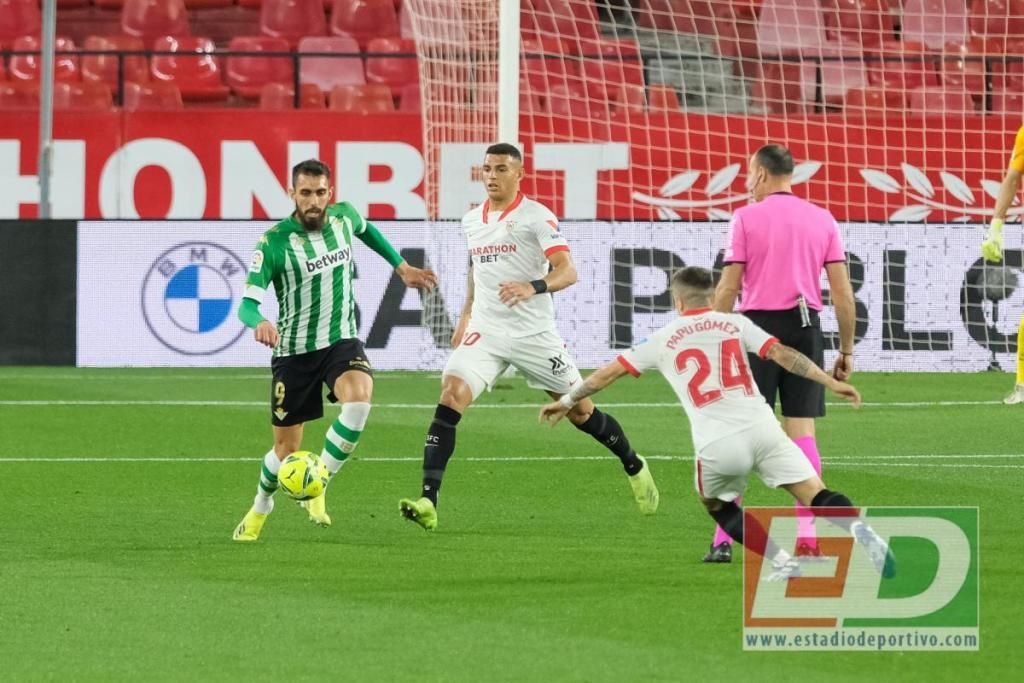 El Real Betis llegaba fuerte a El Gran Derbi. Con confianza. Y lo demostró desde el primer minuto, ejecutando el buen y ambicioso plan de Manuel Pellegrini: con Canales en el centro y Guardado por fuera, para anular a Suso y Navas, y presionar arriba. Muy alto. Impidiendo que el balón saliese limpio, que casi ningún futbolista del Sevilla FC recibiera y se girara.