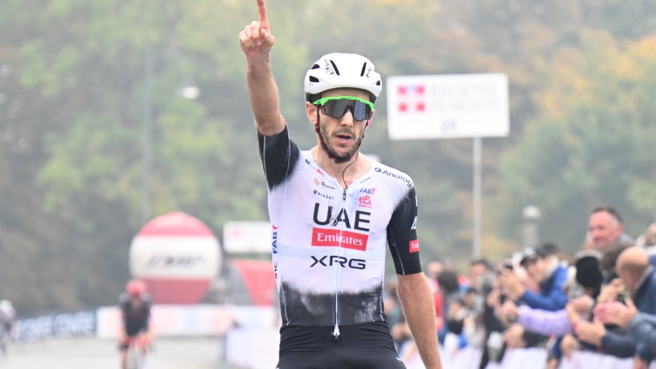Adam Yates, celebrando una victoria como ciclista del equipo UAE.IMAGO