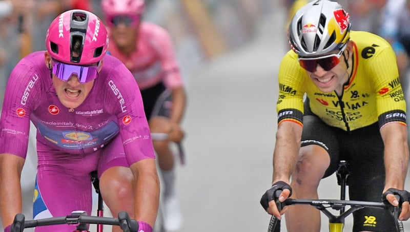 No fue la única bonificación que el líder del Giro se apuntó, pues, como ha hecho en etapas anteriores, esprintó en el 'kilómetro Red Bull' y sumó otros dos segundos, pero 'dejó' que su compañero Juan Ayuso le adelantase -o eso dio la impresión- para que éste, a su vez, sacara cuatro segundos a un Roglic que no estuvo en la pelea.