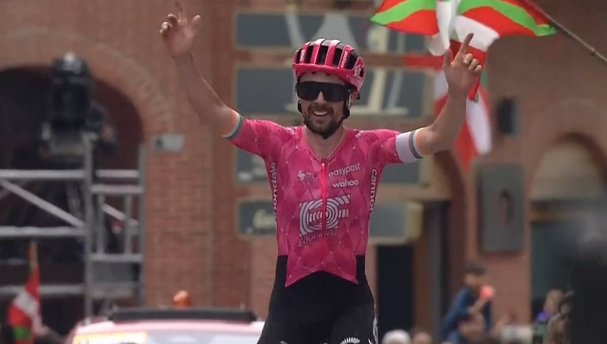 Ben Healy, celebrando la victoria en la Itzulia.@Eurosport