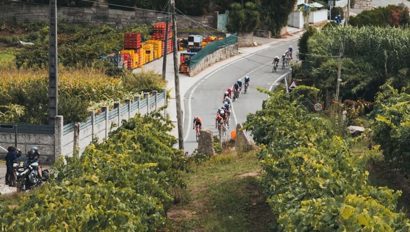 A esas alturas de etapa ya había cuajado la escapada que, a la postre, sería definitva. Diecisiete corredores lograron marcarse y, entre ellos, había nombres ilustres y peligrosos, como los antes mencionados Egan Bernal y Mikel Landa, además de Marc Soler, Andrea Bagnioli, Jefferson Cepeda, Nico Denz... El grupo fue poco a poco ampliando su ventaja de un pelotón que marchaba tranquilo y afrontaba el Alto da Groba con la idea clara de que entre ellos se jugarían la etapa.