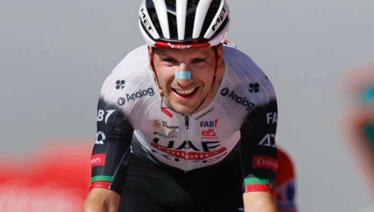 Joao almeida, al entrar en meta@uae_team_emirates