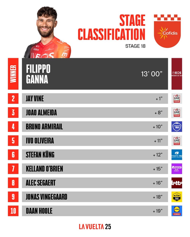 Clasificación de la Etapa 18 de la Vuelta a España 2025