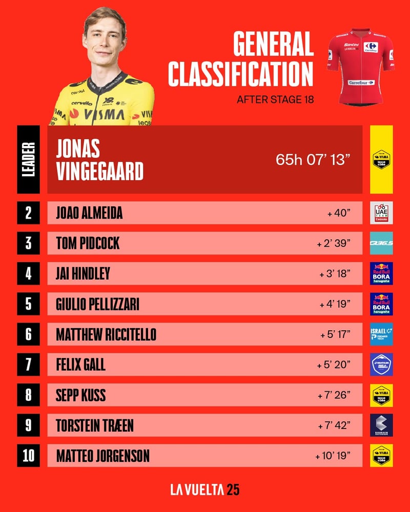 Clasificación general de la Vuelta a España 2025 tras la etapa 18