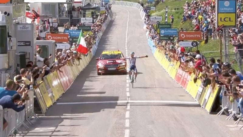 Se esperaba un nuevo duelo entre estos dos últimos, pero cuando les tocó el turno, Lenny Martínez acababa de soltar a Enric Mas en la subida final, tenía buenas piernas y no dejó nunca que se acercaran pese a que Vingegaard y Pogacar iban relevándose en pos del escapado.