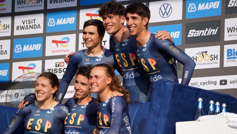 España soñó por momentos, fue líder en meta a su llegada, pero finalmente se plegó a la realidad y saldó con un meritorio sexto puesto la prueba contrarreloj de relevos mixtos del Mundial de Ciclismo que se está celebrando en Kigali (Ruanda).