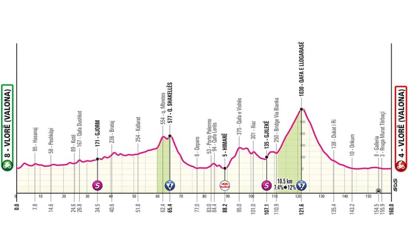 Con salida y llegada en Vlore, serán 160 kilómetros con dos dificultades. Por un lado el Qafa Shakelles, de cuarta categoría, a los 65 kilómetros; y, por el otro, el conocido Paso de Llogara, de segunda categoría, a 40 kilómetros de meta.