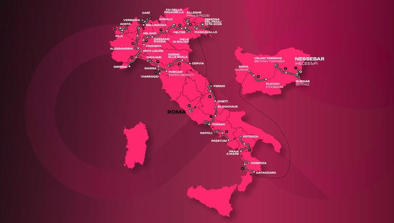Con salida en Bulgaria, regreso a Milán cuatro años después y final en Roma, la 109ª edición del Giro de Italia tendrá lugar del 9 al 31 de mayo de 2026. En un recorrido espectacular, con muchas etapas cortas y explosivas, el Giro 2026 tiene previsto una única contrarreloj individual de 40,2 kilómetros, ocho etapas planas, siete de media montaña y cinco de alta montaña. En total, 21 etapas distribuidas en 24 días.