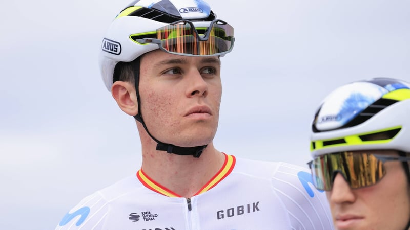 Iván Romeo, compitiendo durante una prueba ciclista con el Movistar Team en 2026.IMAGO